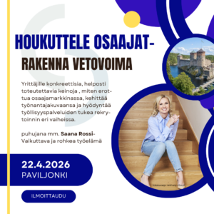 - 09:55–10:15 Työllisyyspalvelut – palvelut ja tuet rekrytoinnin tueksi