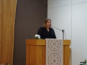 Juhlapuheen pitäjä, hallintosihteeri Taina Tolkki.